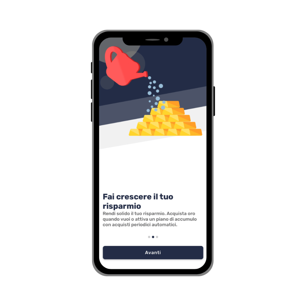 Il Piano di Accumulo in oro fisico è uno strumento di risparmio facile e affidabile, che ti permette di acquistare e accantonare veri grammi di oro fisico anche con piccoli versamenti. Non è necessario depositare grandi somme, per questo motivo il Piano di Accumulo in oro fisico di Conto Lingotto è molto adatto a tutti i tipi di portafogli.